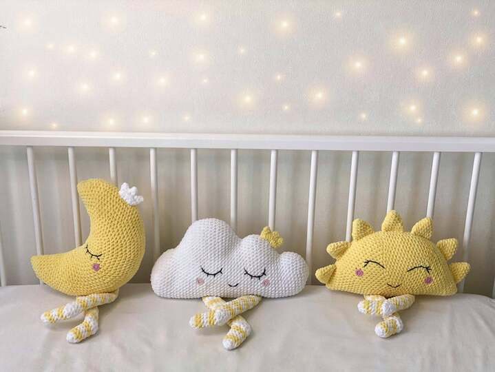 Cute plush pillows for kids room CROCHET PATTERN/ Cloud pillow/ Moon pillow/ Sun Pillow/ Rainbow Pillow/ Pillow pattern/ Bumper pads/Plushie