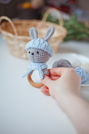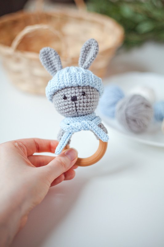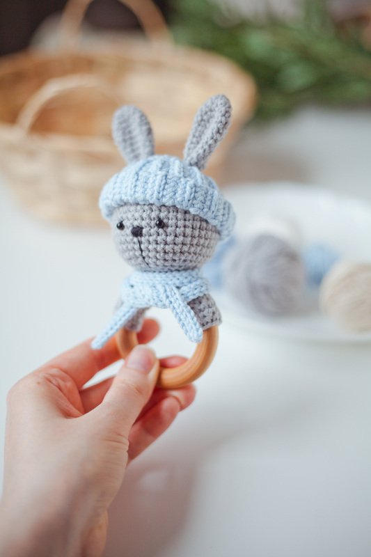 Using this amigurumi bunny rattle crochet pattern in English, you yourself can crochet a rattle for your baby or grandchildren.