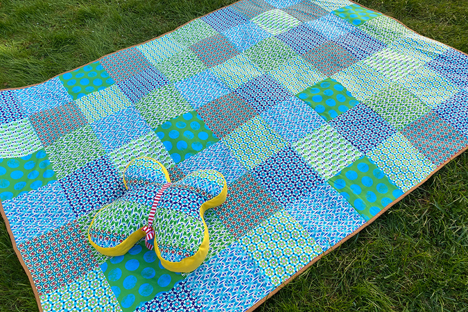Nähanleitung und Schnittmuster in vielen Varianten gestaltet als PDF-E-Book für eine große Patchworkdecke, Kuscheldecke oder Picknickdecke mit Tragegurten GerdaGemütlich.