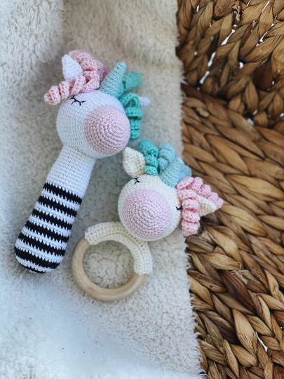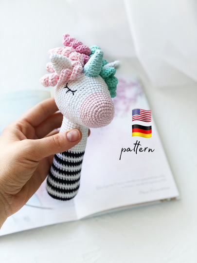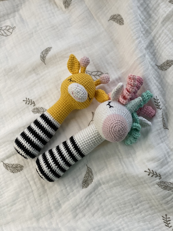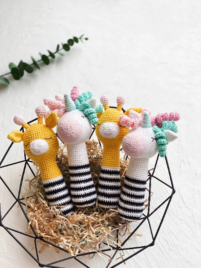 Crochet baby rattle PATTERN: Giraffe and Unicorn (PDF file).