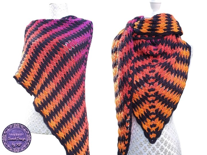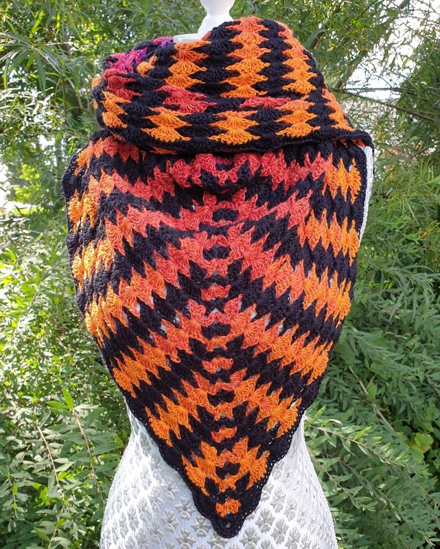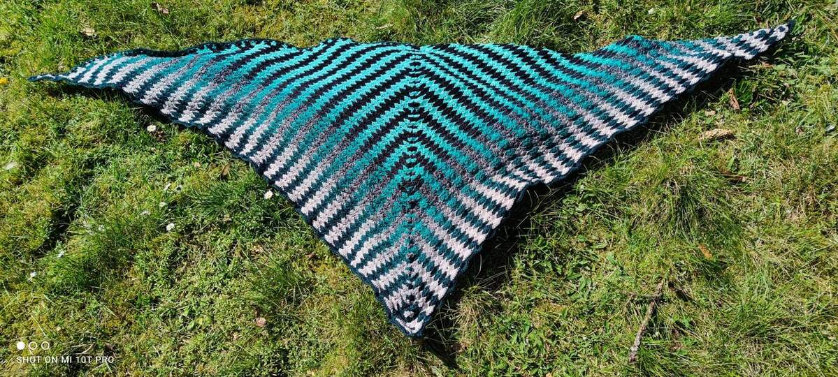Colours II ist ein V-Tuch (hier NICHT enthalten!), zu finden unter: https://www.crazypatterns.net/de/items/81480/haekelanleitung-kontrasttuch-colours-ii-in-moderner-v-form