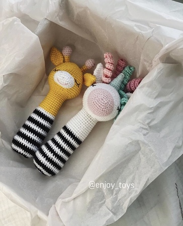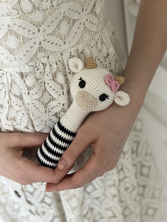 Crochet baby rattle Patterns: Cow, Unicorn, Giraffe (PDF file).
