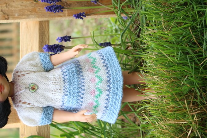 This sweet dress for dolls is knitted in a single piece from the top-down. Has a back Velcro fastening. An ideal gift for the little dolls´ owners!