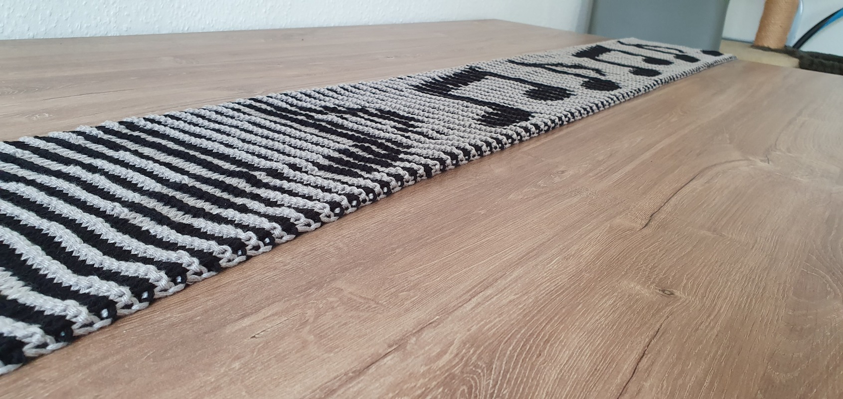 This pattern guides you step by step through creating a unique motif scarf, using the technique of shadow or illusion knitting. With this special method, the motif only becomes visible when viewed from the side – a striking effect with real wow-factor!