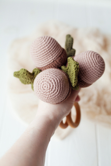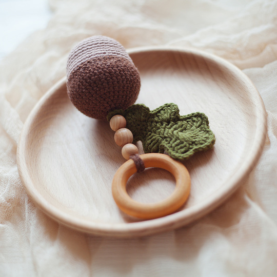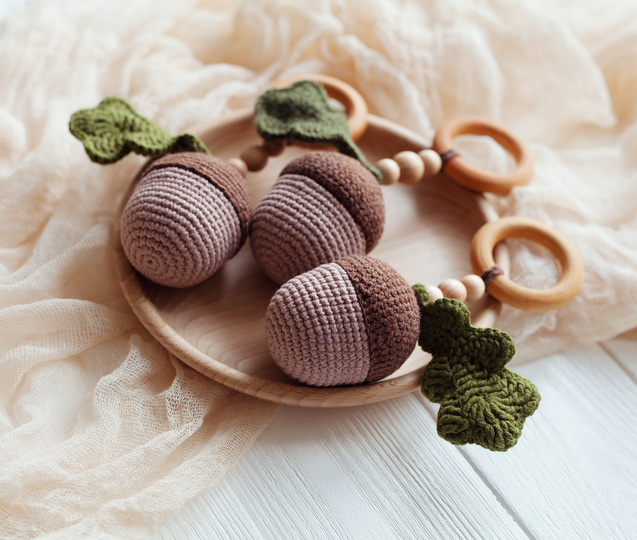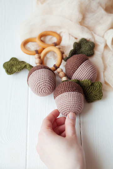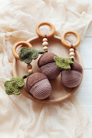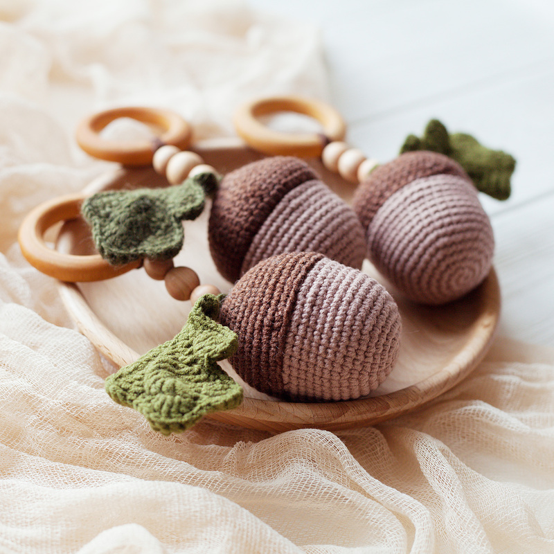 Using this acorn baby rattle crochet pattern in English and Spanish, you yourself can crochet a rattle for your baby or grandchildren.