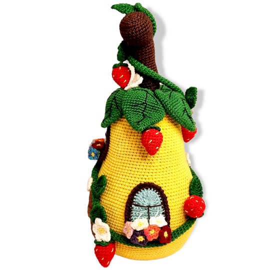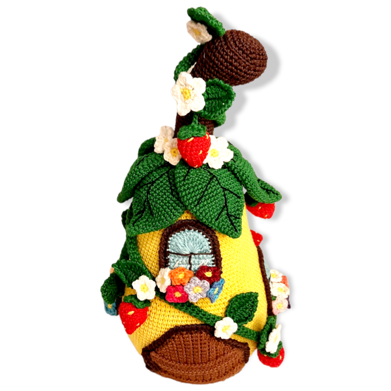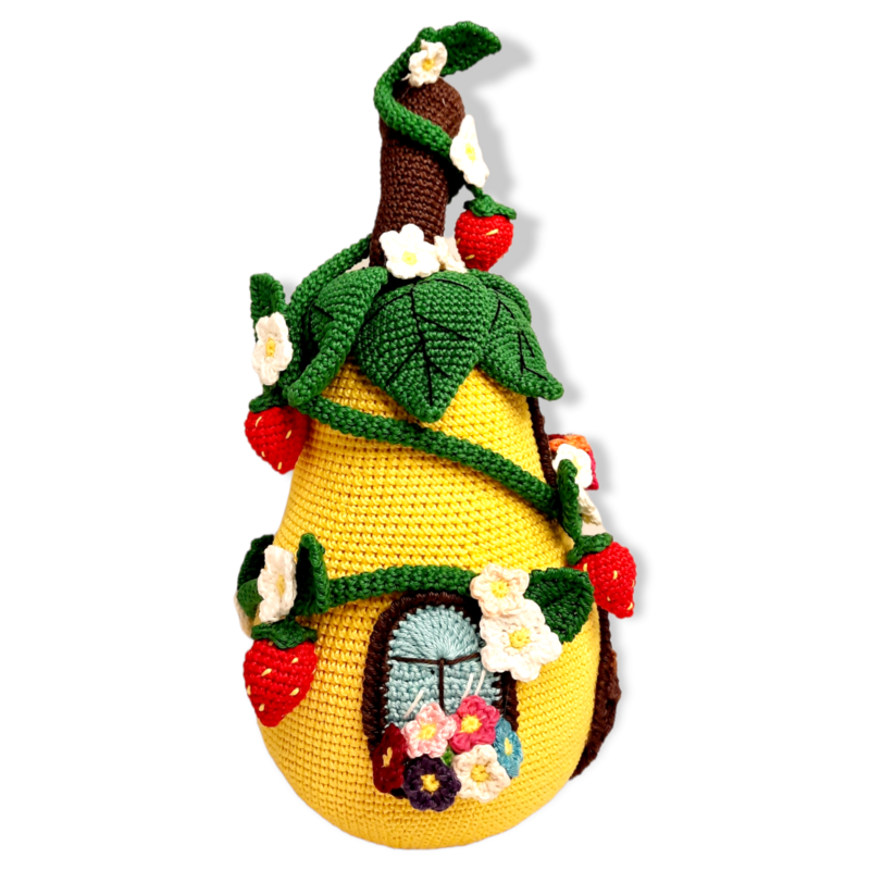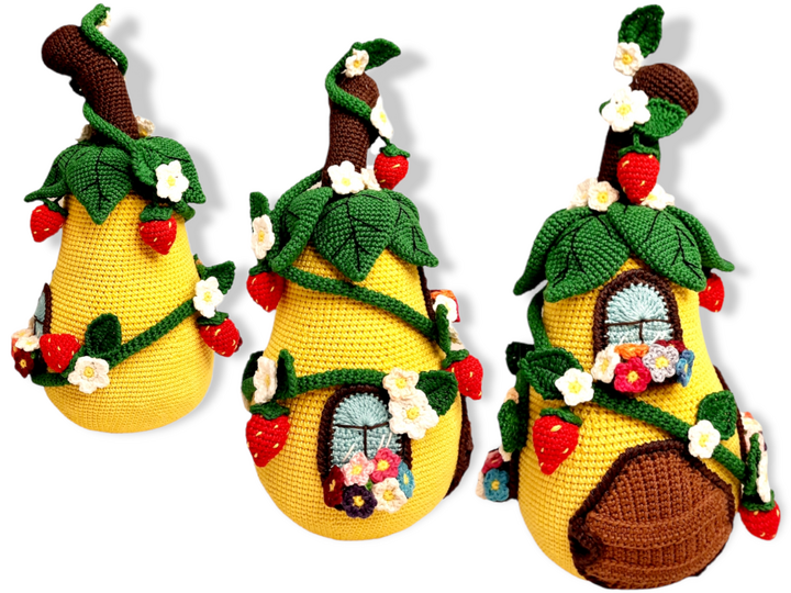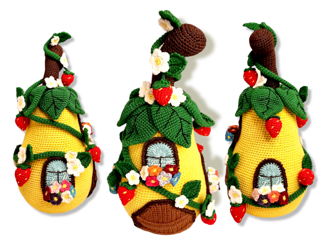 This guide explains step by step how to crochet the pear house. The instructions consist of 22 pages and are provided with many pictures.