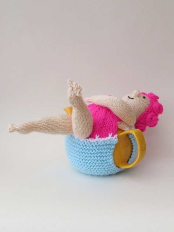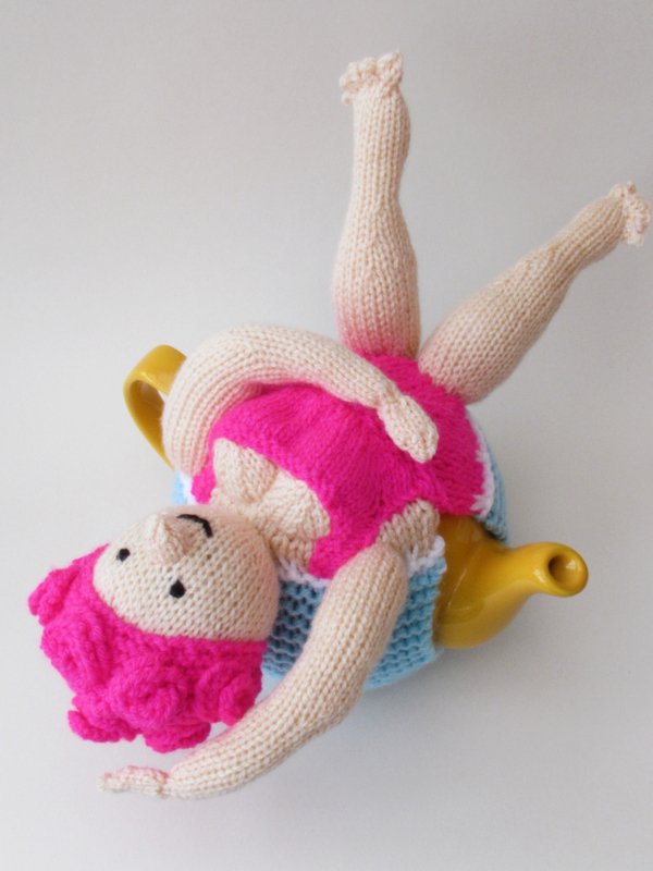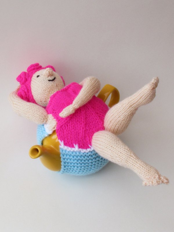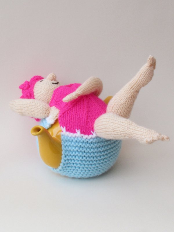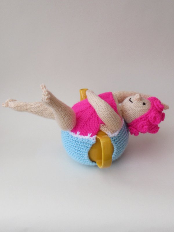 This product is the knitting pattern only; to knit your own Synchronized Swimmer tea cosy.