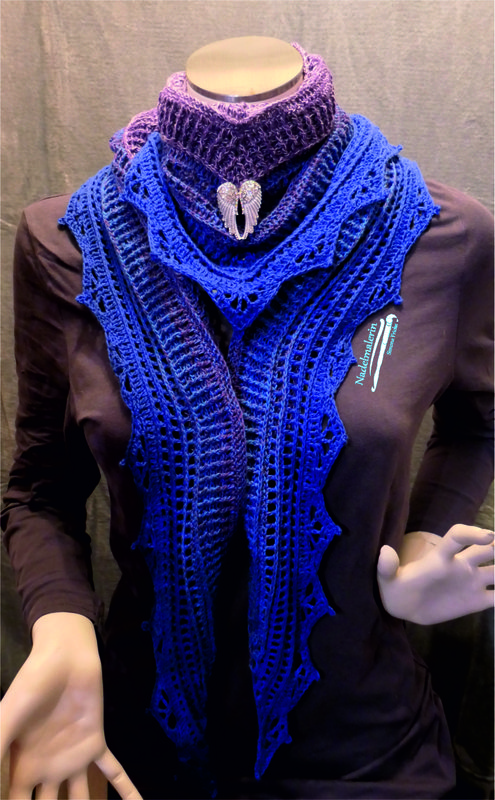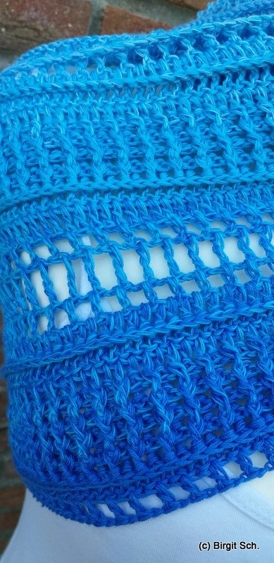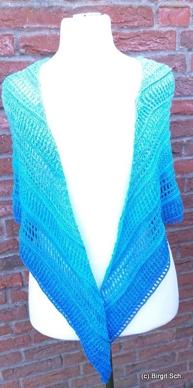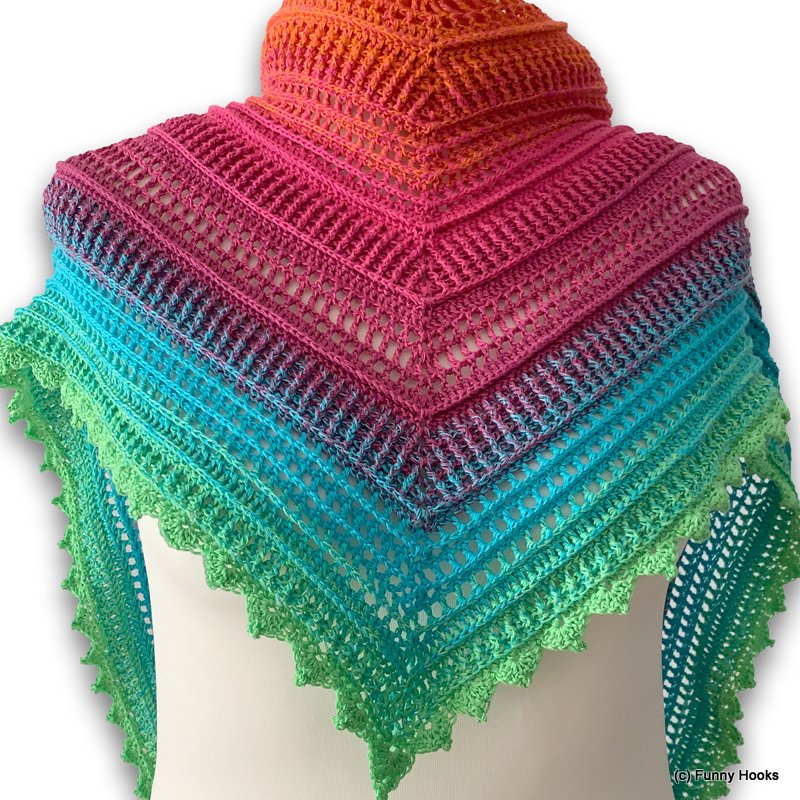 For the cover picture I used the Funny Hooks Bobbel - Wonderful Spring with a LL of 1000 m, 3-ply, 200 g with a NS 3.25 mm. ( size 195 x 56 cm)