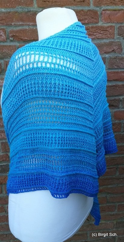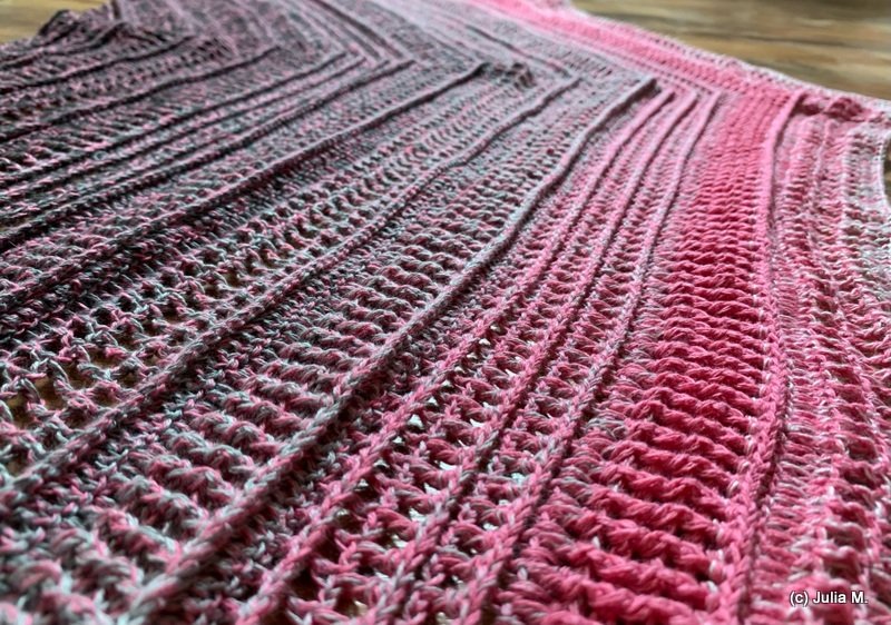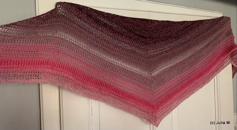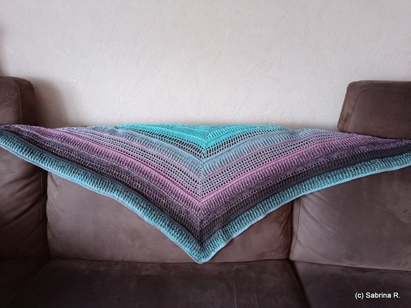 Plakans is a “flat” triangular shawl with simple, catchy patterns. It is quick to do and perfect for relaxed crocheting.
