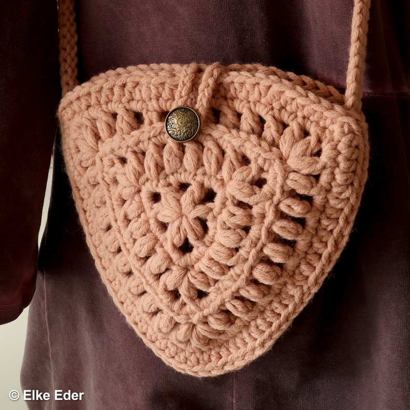 The cute "Triangle " crossbody bag is just the right size to store a few essentials, such as keys, glasses, lipstick, mobile, etc. The crocheted outer pocket is practical and offers space for ID, business cards, hair ties, headphones, etc. The whole thing is secured with a button.