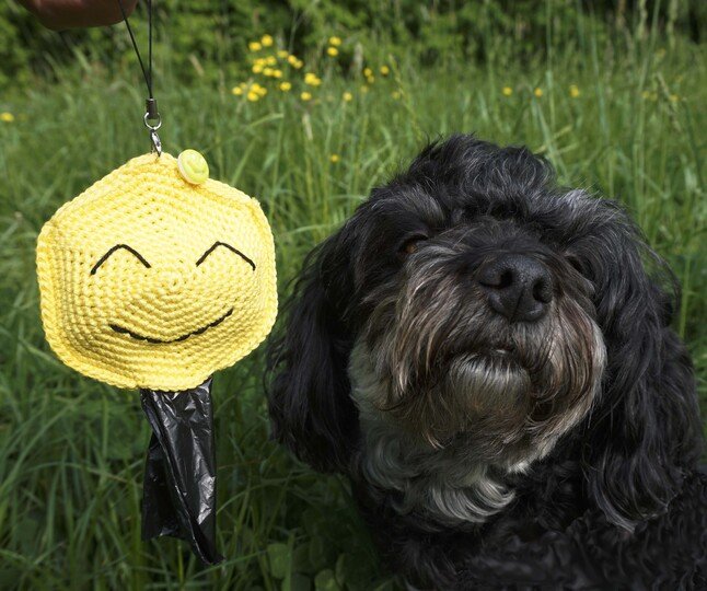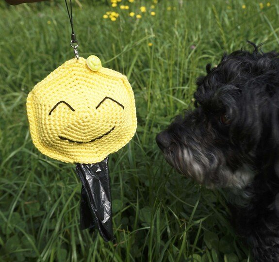 Here we offer you crochet pattern for the Dog Bag Dispenser "Smiley"!