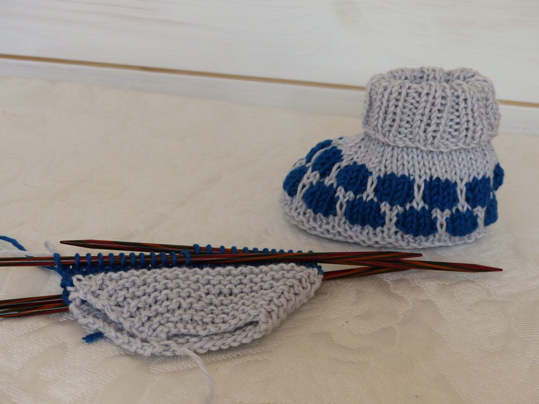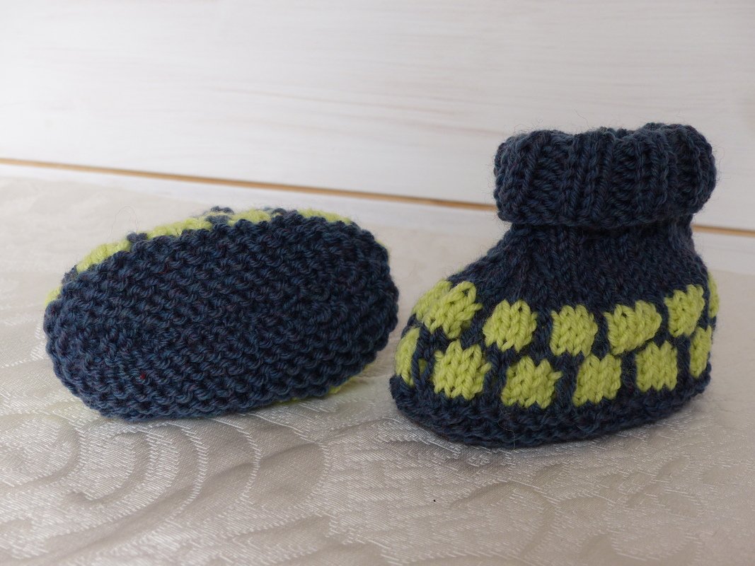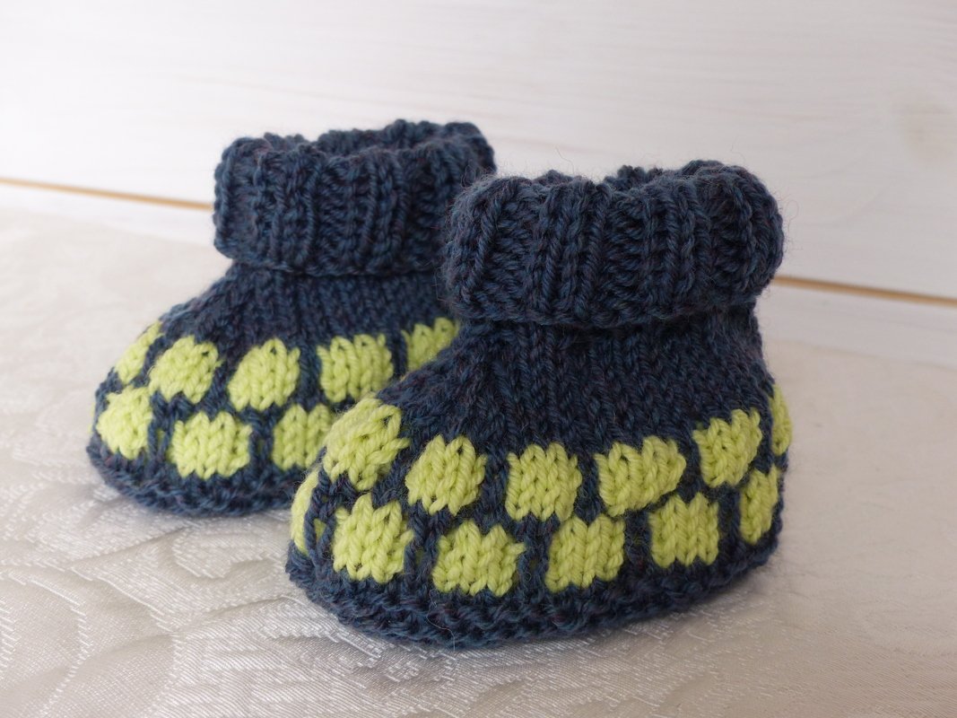 Babyschuhe sind immer ein schönes Geschenk um einen neuen Erdenbürger willkommen zu heißen. Gestrickt mit Baumwolle oder mit Merinogarn sind sie passend das ganze Jahr.