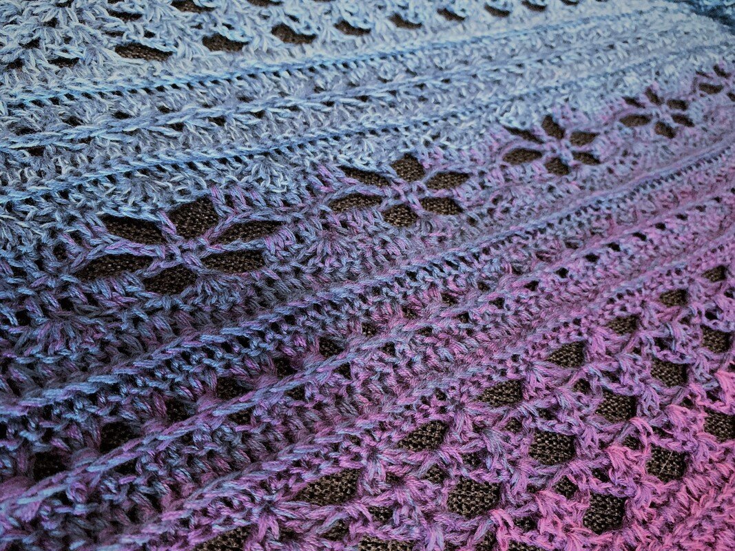 The shawl can easily be crocheted while watching TV, at least most of the time ;-) - some rows can be remembered easily, while for others you might have to peek at the instructions every now and then. But the diverse pattern ensures that you do not get bored while crocheting!