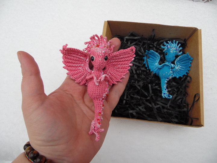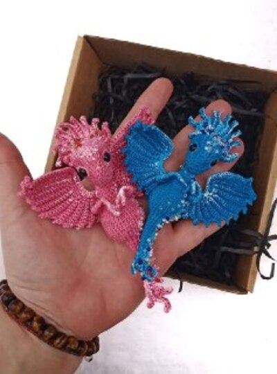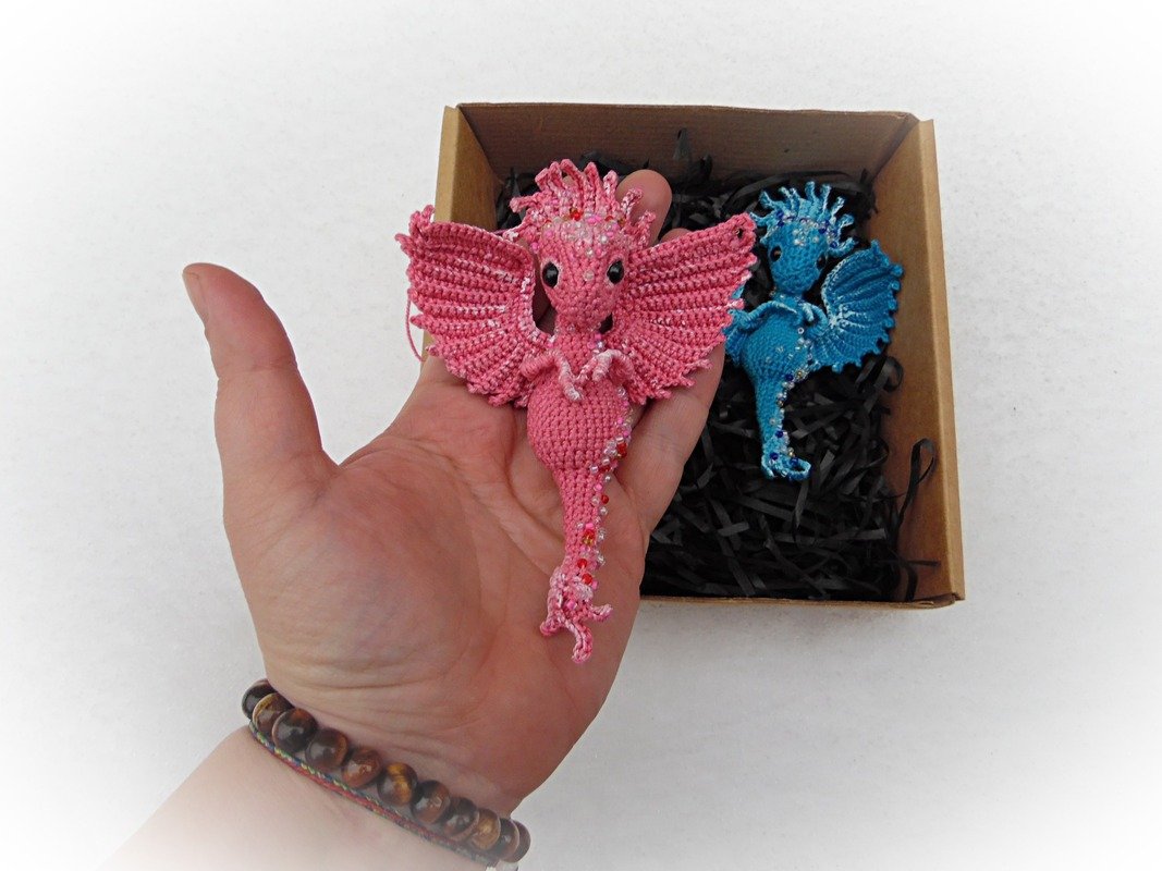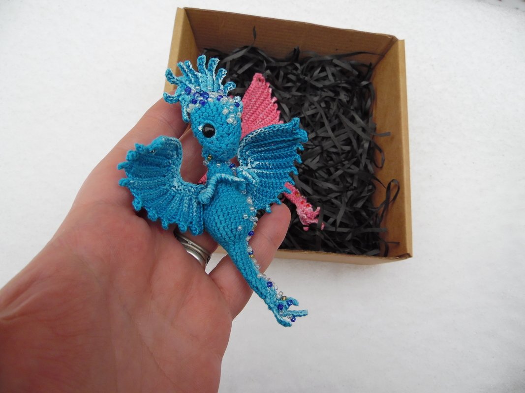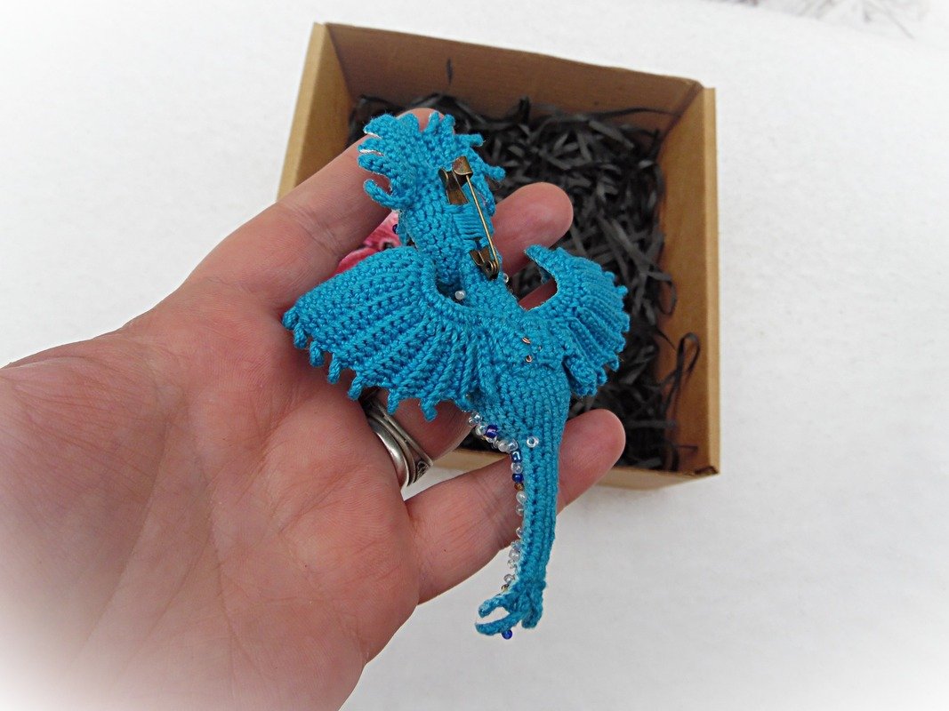 This little Dragon can be crocheted relatively quickly and is perfect as a crochet brooch, gift or key chain.