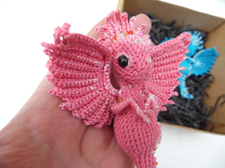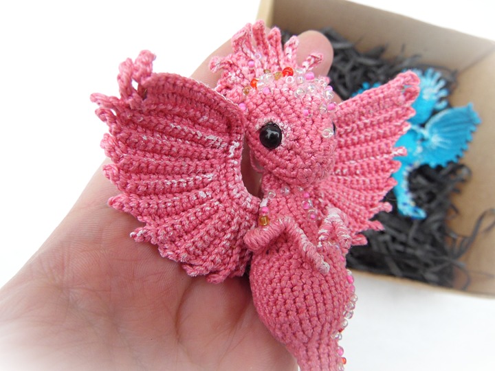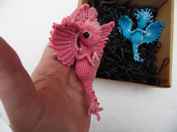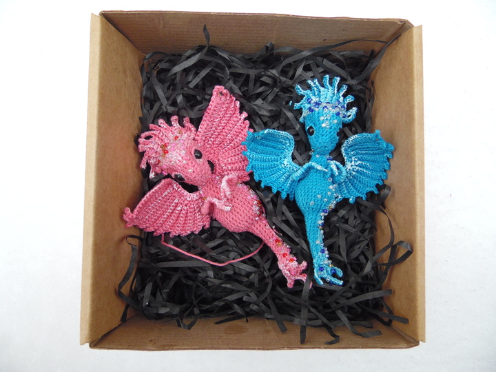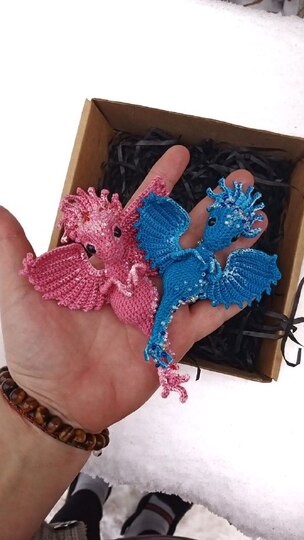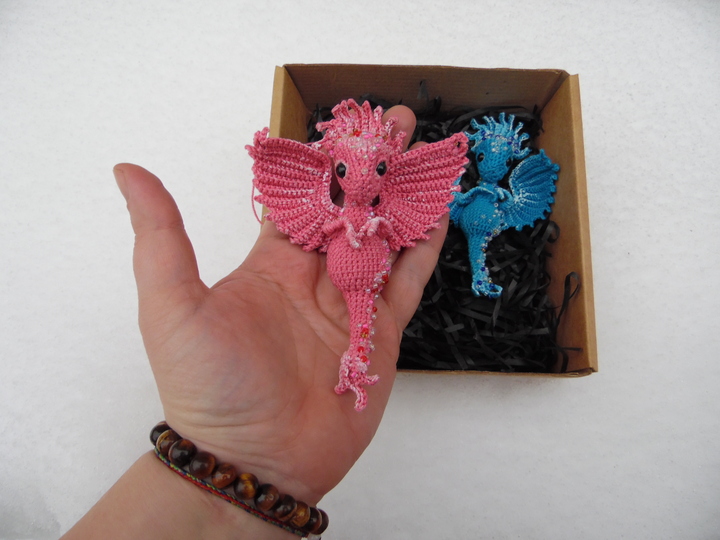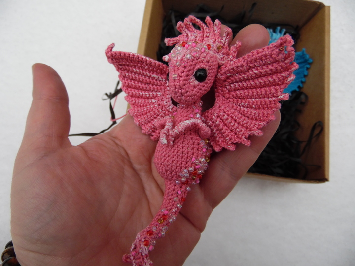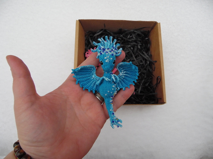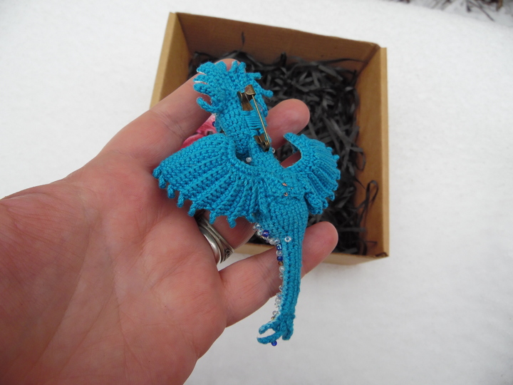 This little Dragon can be crocheted relatively quickly and is perfect as a crochet brooch, gift or key chain.