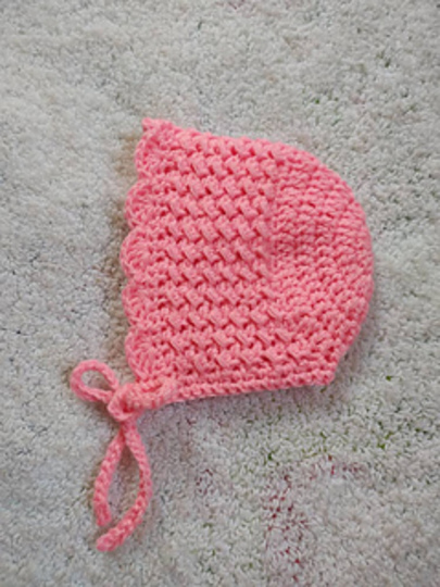 This baby bonnet pattern contains instructions for sizes 0-6 months and 6-12 months. It is beginner friendly as it makes use of simple crochet stitches like Dc, SC, Slip stitch and Hdc