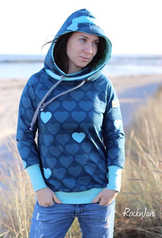 Damit kannst du unsere beliebte Wickelkapuze, die es eigentlich nur bei unserem Hoodie-Schnitt Vanja gibt, auch für unsere anderen Hoodies Nanuc und Paco nutzen. Bei diesen beiden Schnitten ist bisher nur eine sogenannte Astronautenkapuze (mit Steg unter dem Hals) enthalten. Natürlich ist es auch möglich, diese/n Kapuzen/Kragen an nahezu alle anderen Pulloverschnitte zu nähen. Da die Kapuze/der Kragen gewickelt wird, spielt die Weite des Halsausschnitts des Pullovers keine große Rolle.
