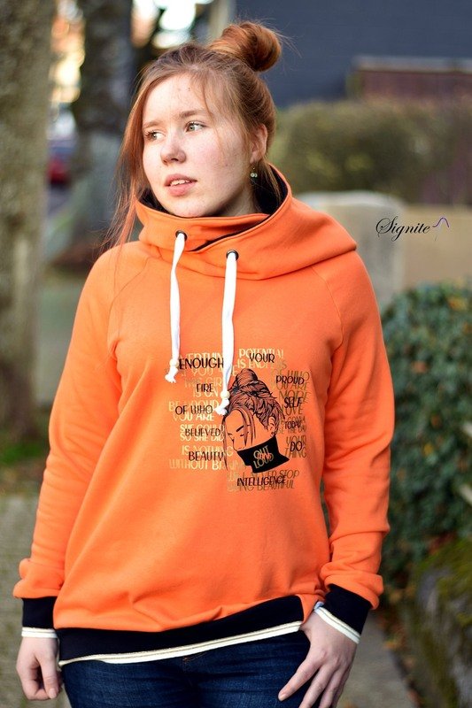 Für die Kapuze/den Kragen eignen sich die meisten dehnbaren Stoffe, wie z.B. Sweat, French Terry, Jersey, etc. In der Regel solltest du den gleichen Stoff wie für den Hoodie verwenden.