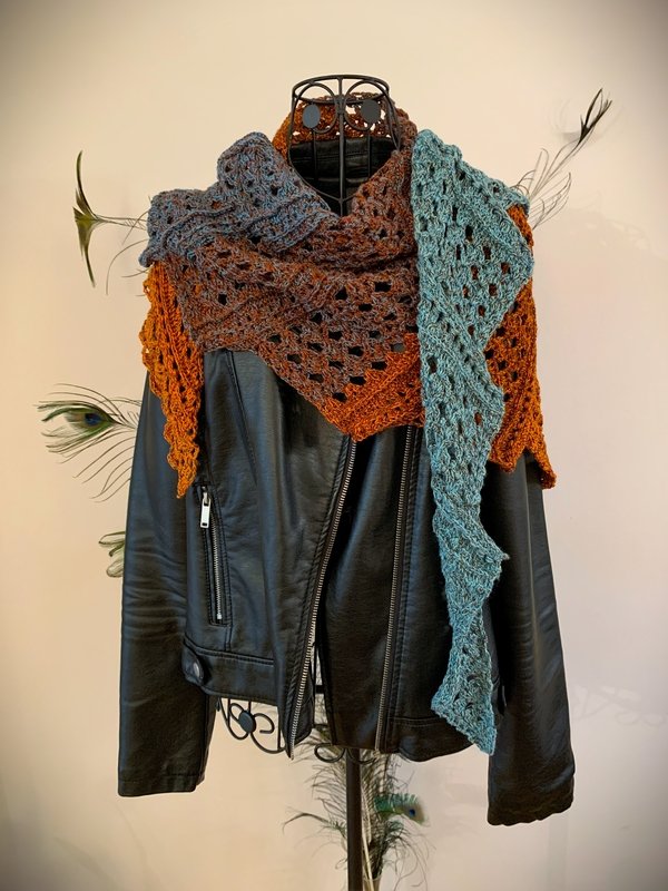 With this pattern you can crochet the adorable asymmetrical triangle shawl "Rhoxane". The shawl can be loosely wraps around the neck, and includes info on how to crochet it less pointy if you prefer to make it this way.