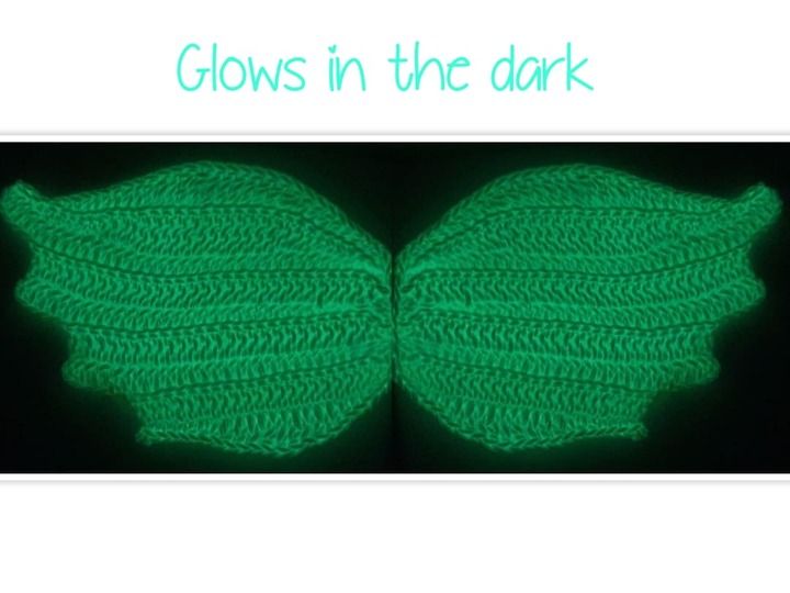 If you want you can use luminescent wool for the wings. I used the Amigurimi Glow Circulo. Of course you can also use any other luminous wool. Please note that the wings could be smaller or larger depending on the thickness of the wool.