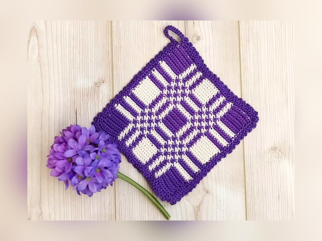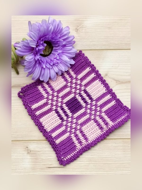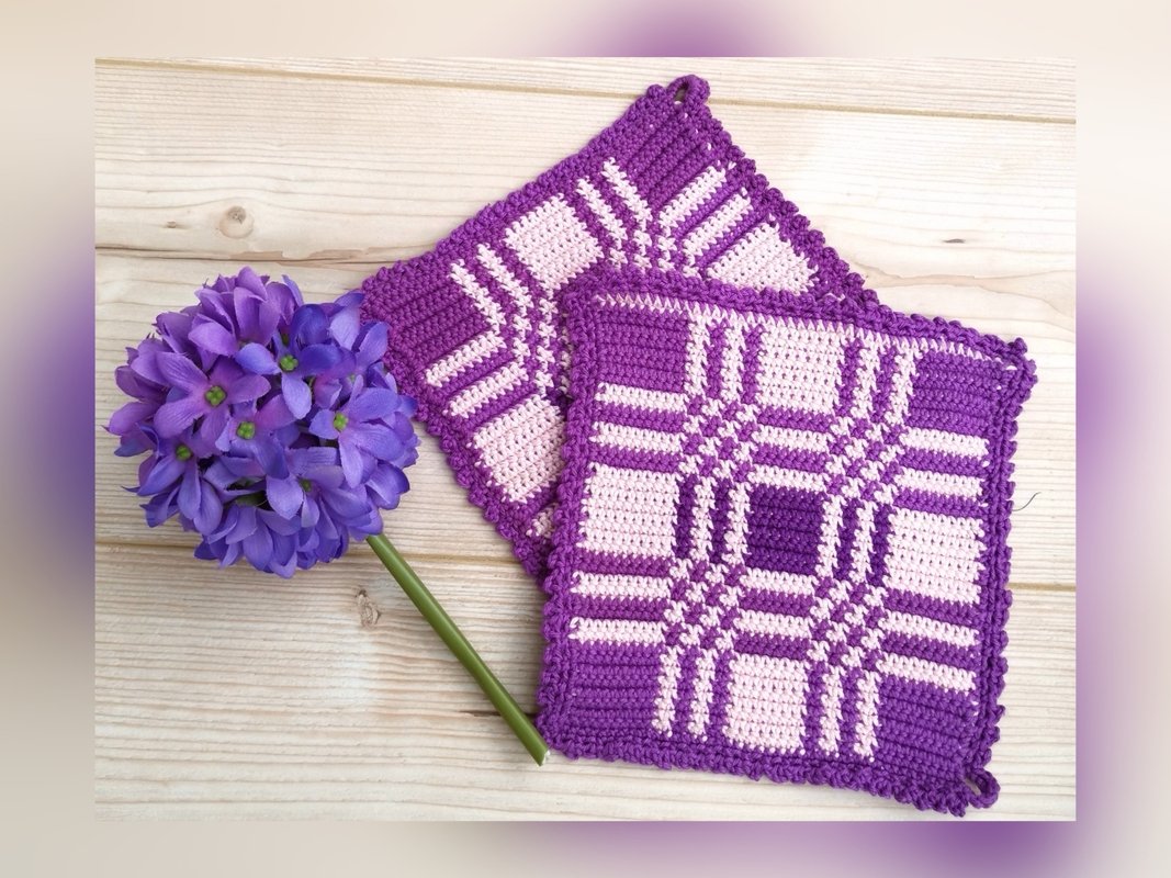 When using a crochet hook 3 mm the potholders will have a size of about 18x19 cm.