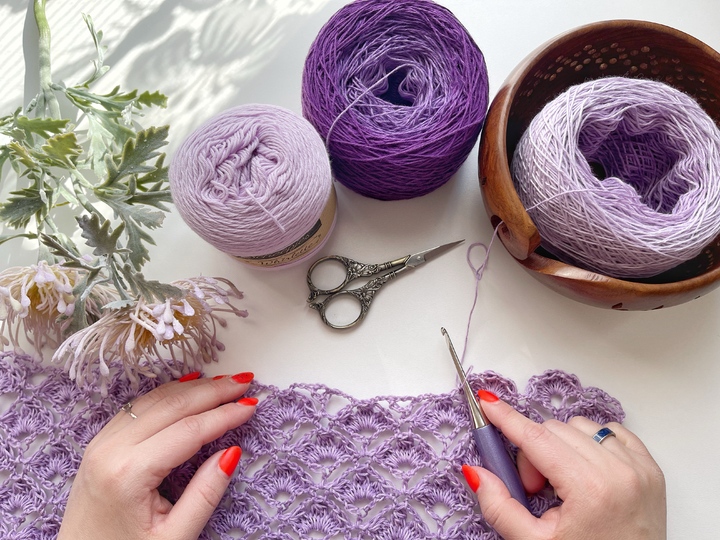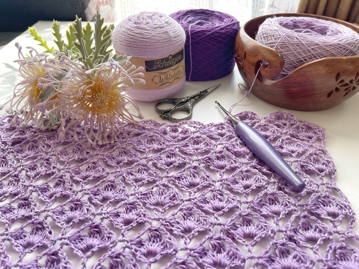 • 1 Scheepjes Whirl (I used Shrinking Violet shade) and 1/4 Whirlette (I used Parma Violet Shade)
