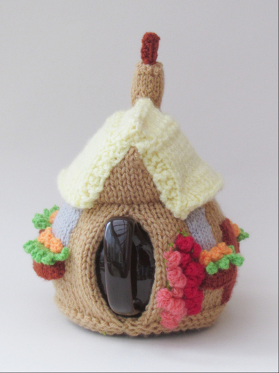 This product is the knitting pattern only; to knit your own Crofters Thatched Cottage tea cosy.