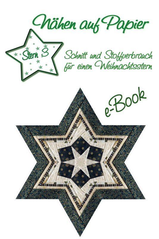 Weihnachten kommt mit großen Schritten und ist immer so schnell da. Nähen auf Papier (Paper Piecing) macht Spaß und hat Suchtfaktor. Dieses e-Book enthält Angaben zum Materialverbrauch und einen Schnitt zum Nähen auf Papier. Sehr schön sieht der Stern auch in anderen Weihnachtsfarben aus.
