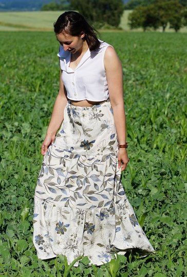 Hier könnt ihr einen luftiger Boho - Sommerrock schnell selbst und ganz ohne Schnittmuster nähen.