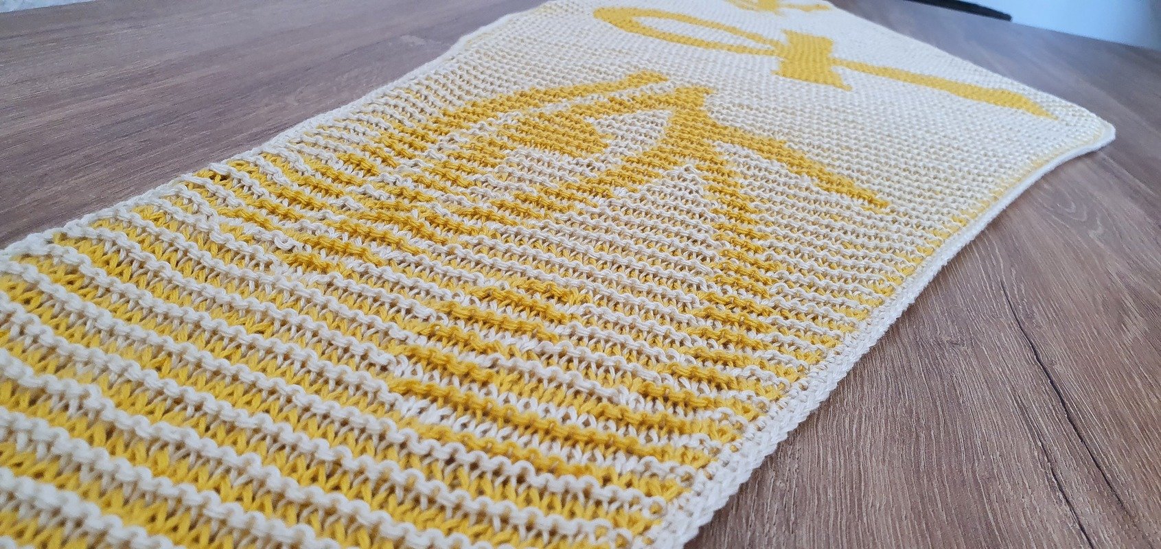 This pattern guides you step by step through creating a unique flat motif shawl, using the technique of shadow or illusion knitting. With this special method, the motif only becomes visible when viewed from the side – a striking effect with real wow-factor!