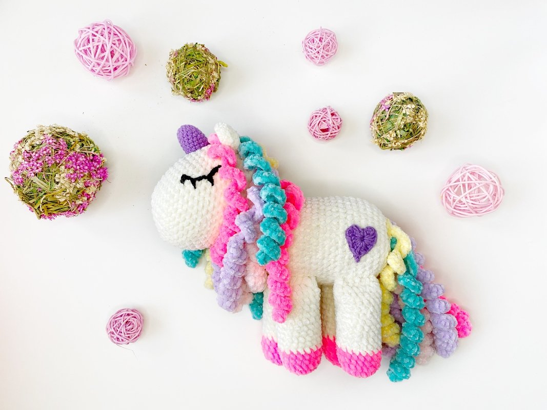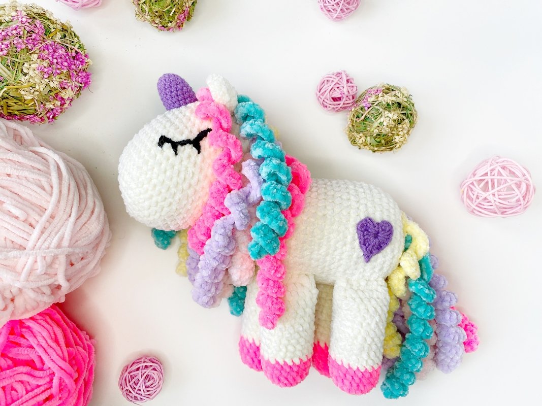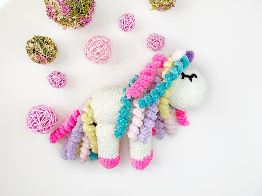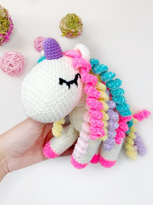 Crochet PATTERN plush unicorn is a DIGITAL PATTERN in English in pdf format, this is not a finished toy. This pattern includes the description of how to crochet a unicorn.
