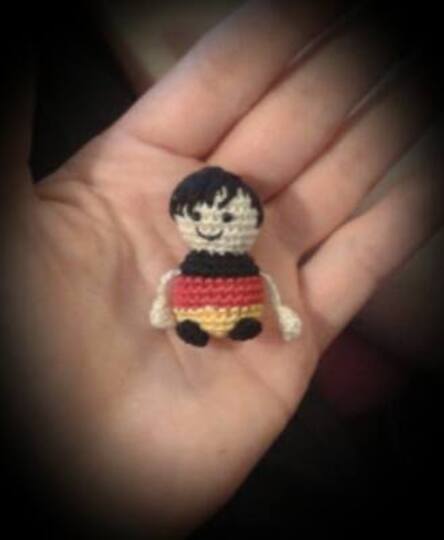 bestimmt gibt es einige Fußballfans unter euch und da habe ich mir dieses Mini-Fußballmännchen ausgedacht. Ein süßes Geschenk oder auch ein kleiner Glücksbringer oder als Schlüsselanhänger auch super beliebt. Meine Minis sind meinstens nur ein paar cm hoch und in 10er Garn (Nadelstärke 1,5mm) gearbeitet. Wer die Figur etwas größer haben möchte, brauch einfach nur dickeres Garn nehmen :)