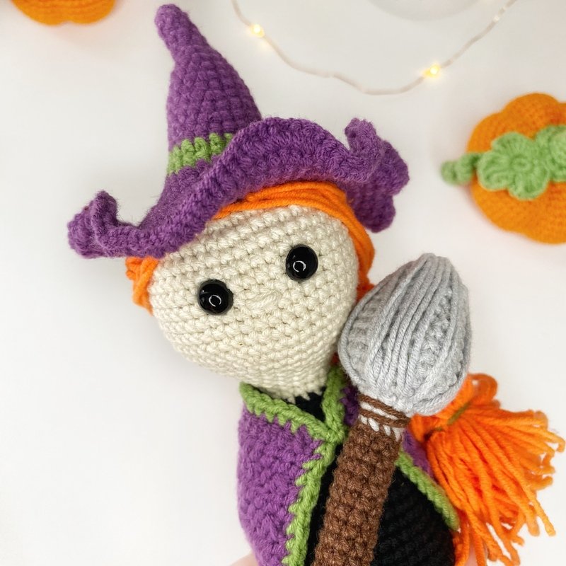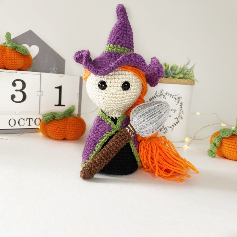 Crocheted Amigurumi Witch Pattern. Make a witch in a witch’s hat with your own hands! This template includes a description of how to crochet a Witch Doll. The perfect crocheted cute Halloween decoration