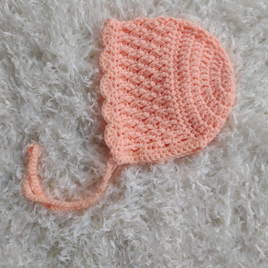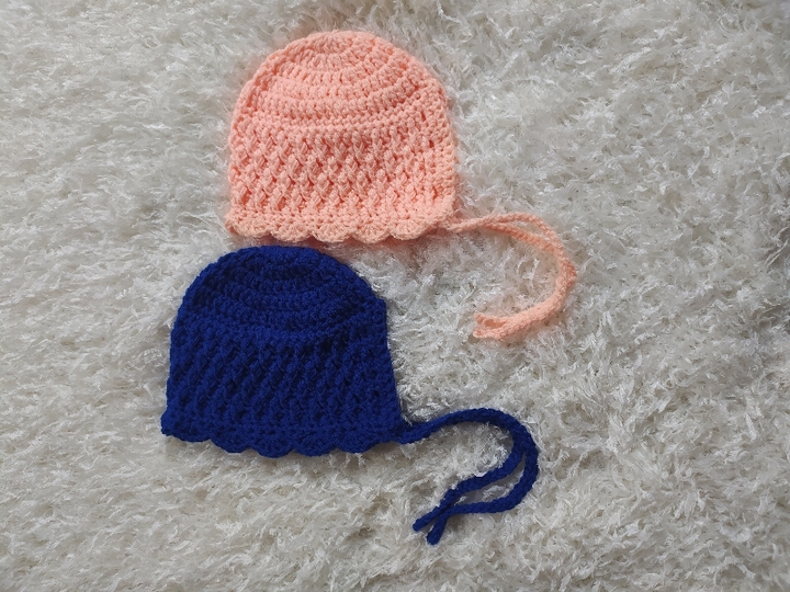 This alpine baby bonnet is an easy and cute baby hat that quick to make.it textured and so cosy. This baby bonnet pattern contains instructions for sizes 0-6 months and 6-12 months. It is beginner friendly as it makes use of simple crochet stitches like Dc, SC, Slip stitch and Hdc.