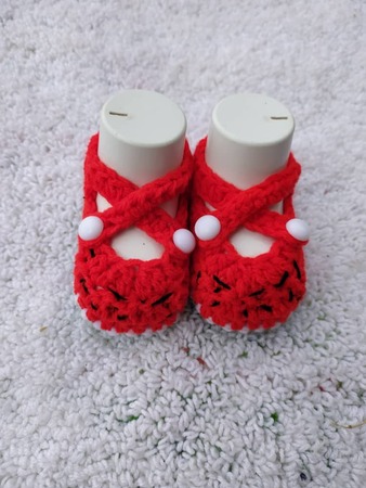 This is a cross strap watermelon baby booties pattern worked flat. It is suitable for beginners and those who don’t like working soles in the round. It easier and fun to make.
