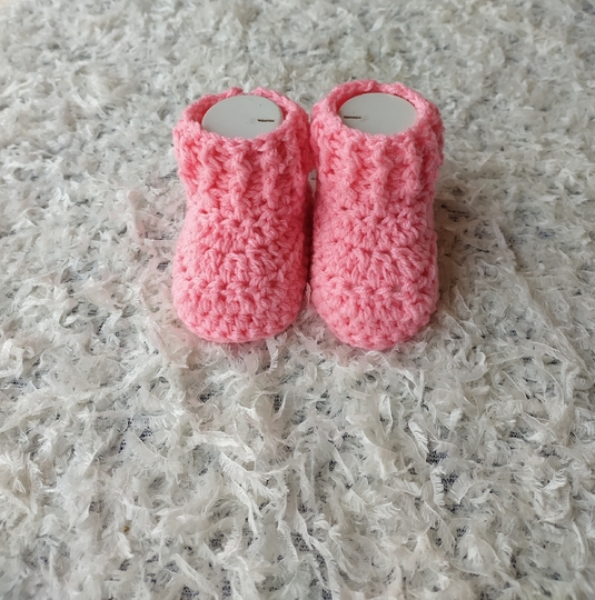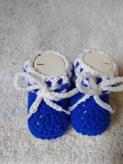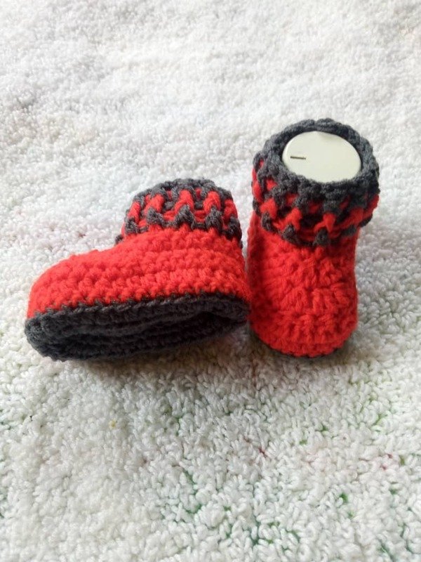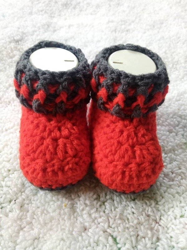 This is a unisex baby booties worked flat with three sizes for 0-3 months, 3-6 months and 6-9 months old babies. It is worked with two colours. It works up pretty fast and easy. Suitable for those that find it hard to make soles in the round. It's very beginner friendly.