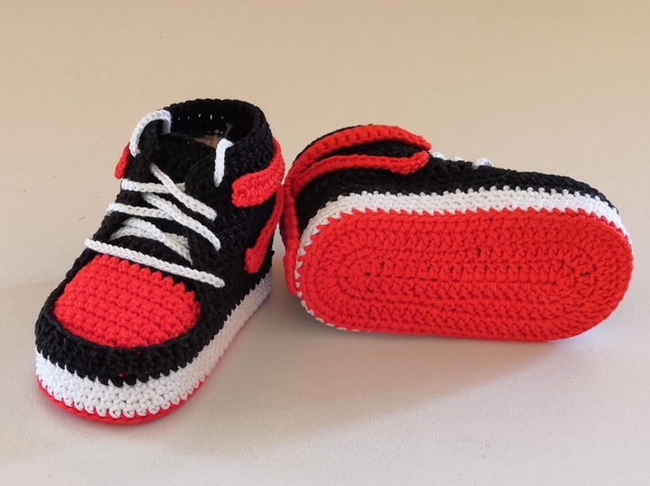 These fashion crochet basketball baby sneakers booties are a great pattern for a baby shower gift. These adorable baby shoes are quick and easy to make.