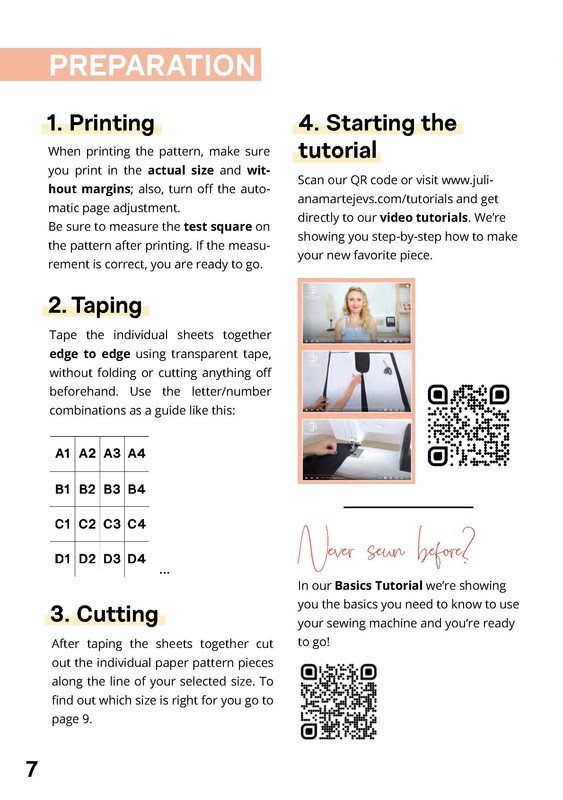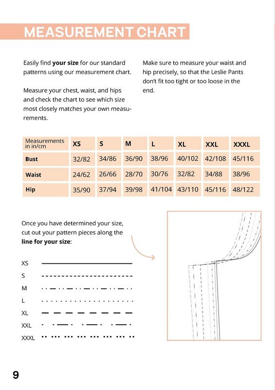 • Sewing pattern for the pants in sizes XS-XXXL incl. all seam allowances as a PDF A4 and Letter to download