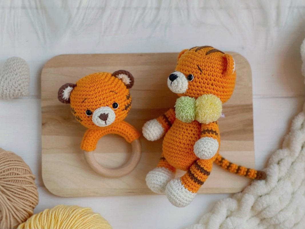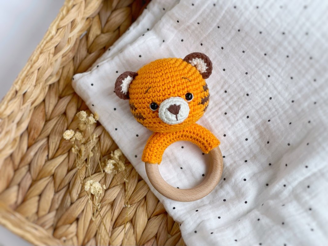 Baby rattle tiger pattern - https://www.crazypatterns.net/en/items/76928/crochet-pattern-baby-rattle-tiger-pdf