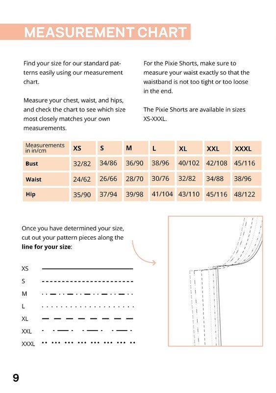 • Sewing pattern for the shorts in sizes XS-XXXL incl. all seam allowances as a PDF A4 and US Letter to download