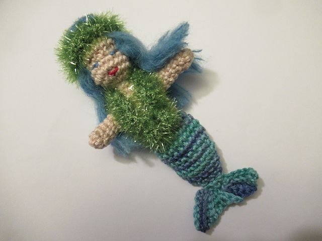 Eine kleine Meerjungfrau für die Hosentasche! Das Fingerpüppchen lässt sich schnell und einfach aus ein paar Wollresten häkeln und kann überall hin mitgenommen werden. So kann es lange Autofahrten oder Wartezeiten verkürzen und regt die Phantasie zu immer neuen Geschichten an. Die Meerjungfrau kann auch als Taschenbaumler verwendet werden.
