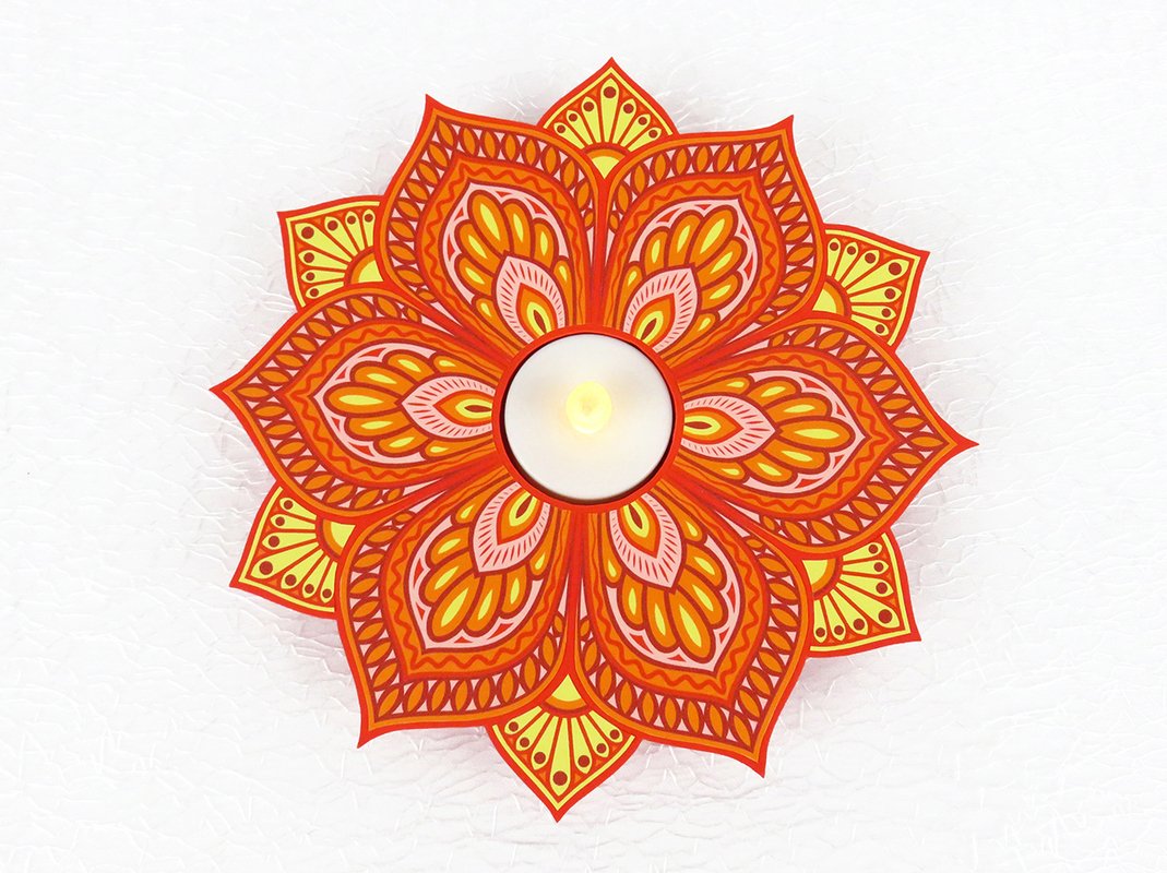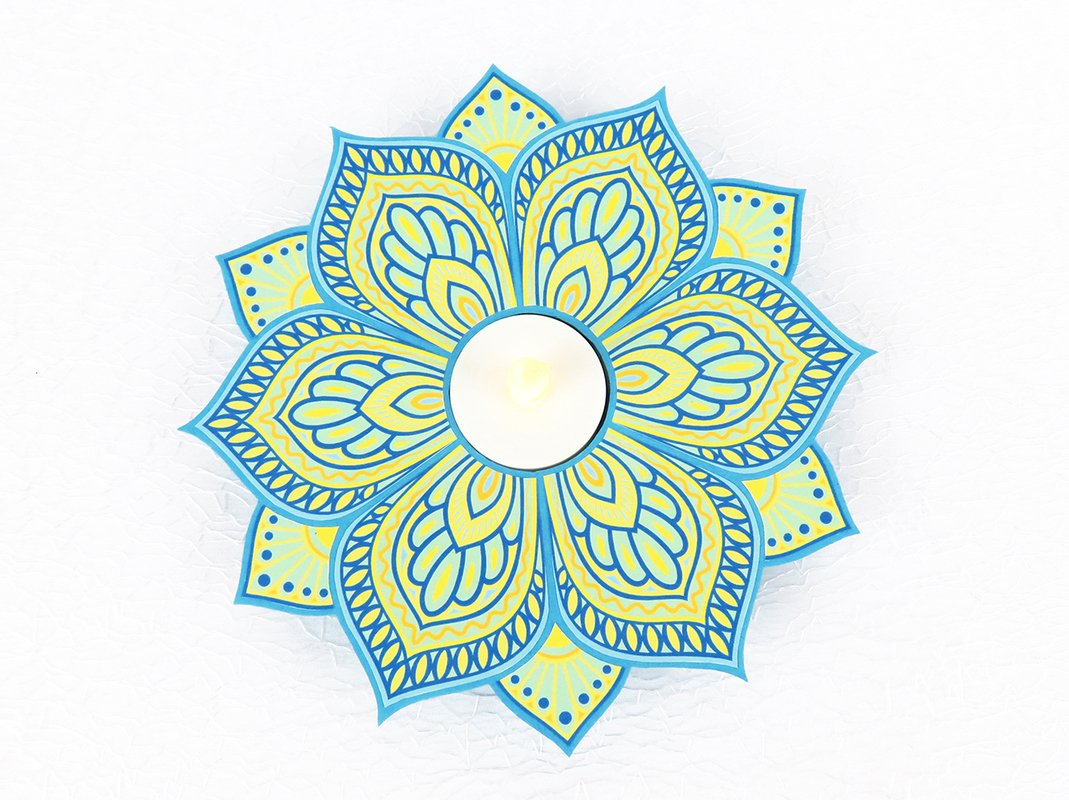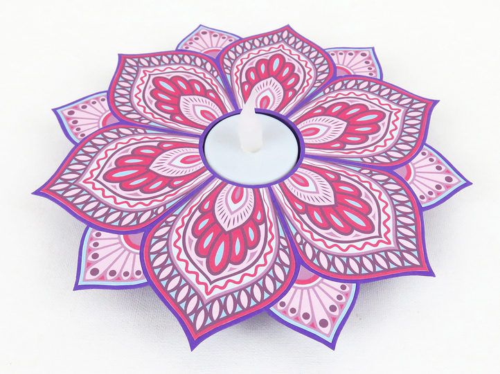 Weil ich sehr gerne Ornamente und besonders Mandalas zeichne, hatte ich die Idee, etwas für einen Teelichthalter zu entwerfen – die runde Form bietet sich ja dafür an. Das Resultat kannst du nun sehen, und wenn du möchtest, nachbasteln.