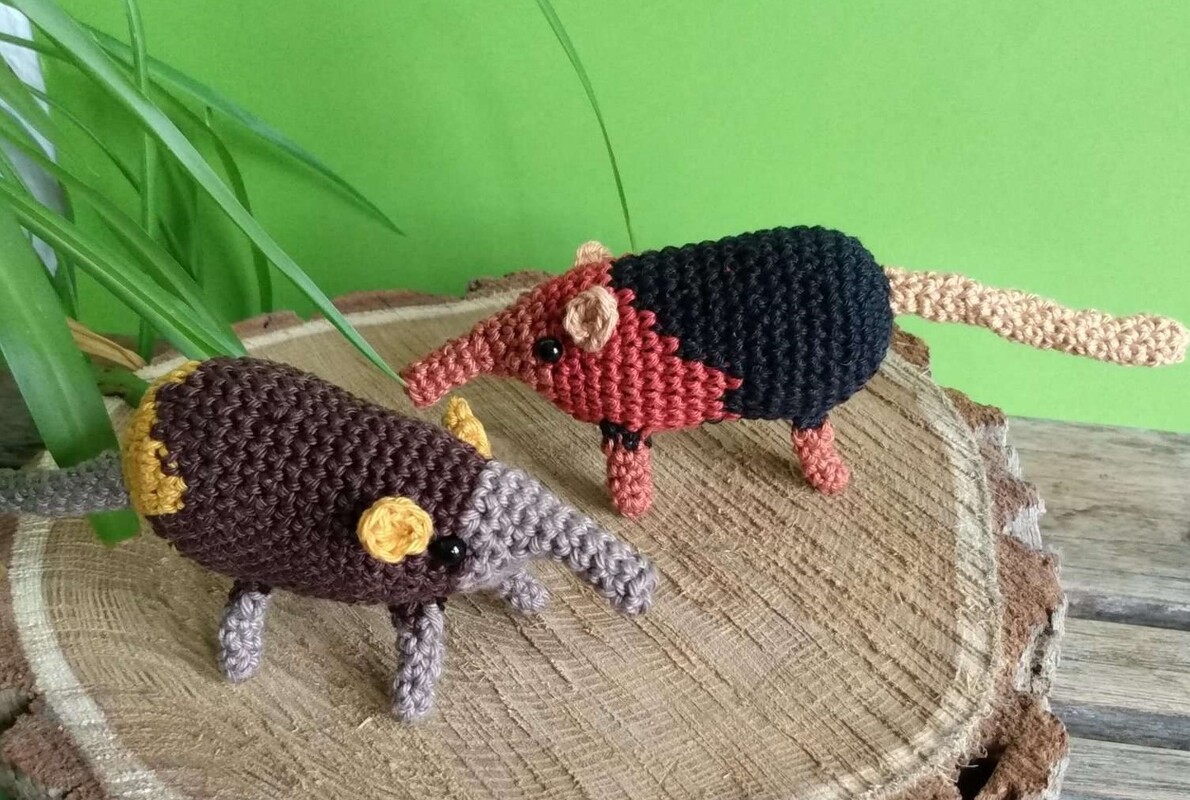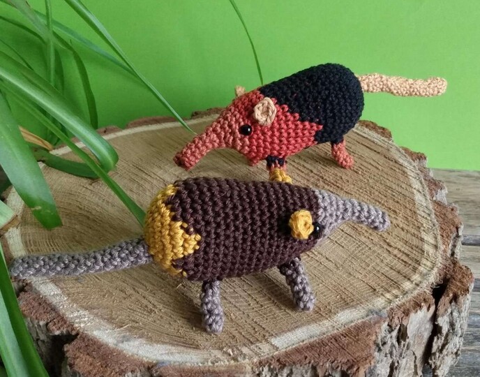 The pattern is a two in one pattern with a table to make two different elephant shrews. You can go along the pattern and make either an black and rufous elephant shrew or a golden-rumped one. Or you can go with your own creativity and make your own elephant shrew.
