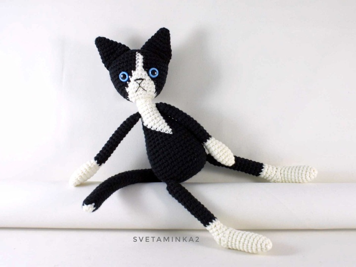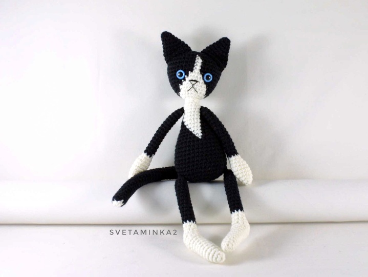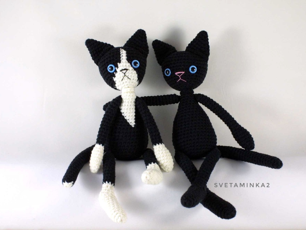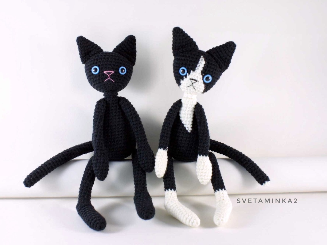 Crochet Cat Pattern to make your own Amigurumi Black Cat or Black and White Cat ! The Amigurumi Cat Pattern (pdf file) is in English (US terms), very detailed, very clear instructions and tips with lots of photos for each step.