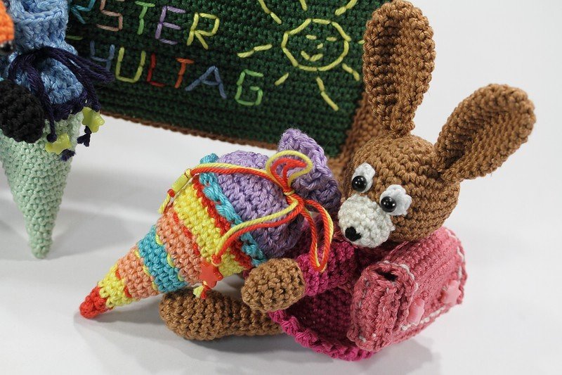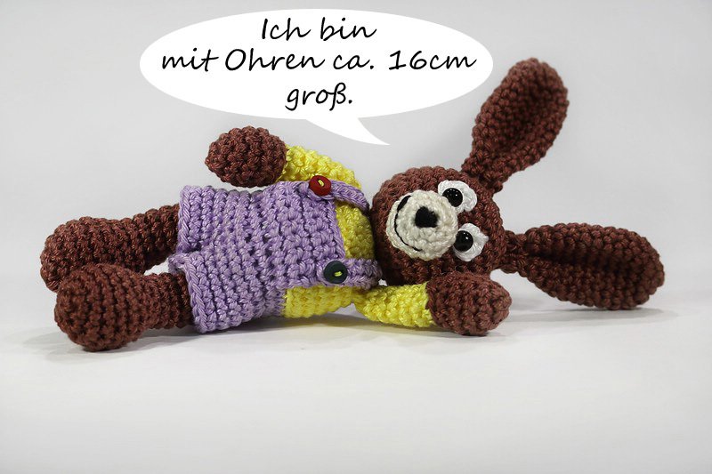 Die Tierkinder sind mit Ohren ca. 15-16 cm groß (mit Baumwolle (125m/50g) gehäkelt).