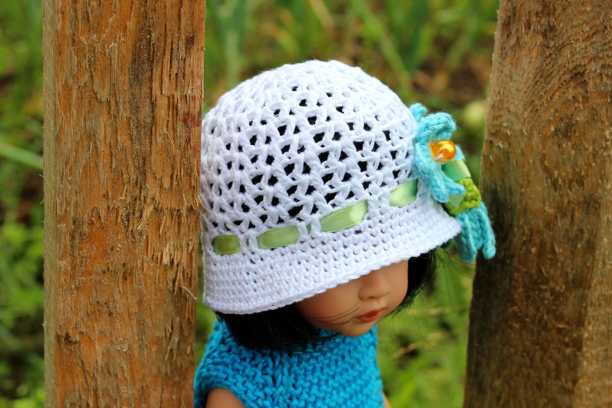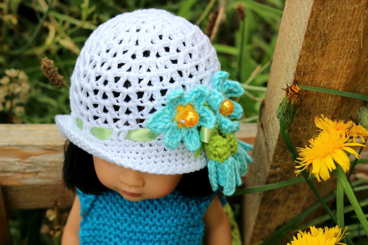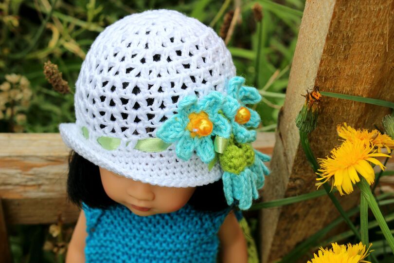 An adorable daisy hat for your 12-inch doll. This hat makes a great gift for any little girl who loves dressing her doll up! This hat gives you a lovely summer accessory to add to your dolls wardrobe.