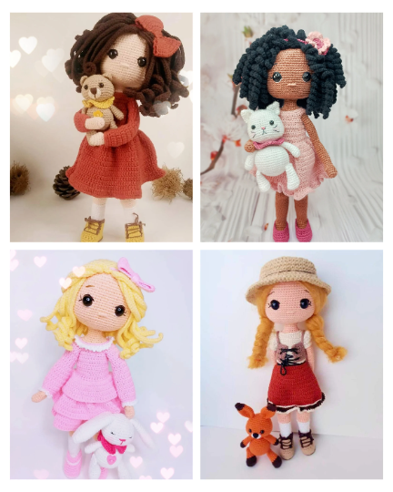 Crochet pattern pack 4 doll patterns together english pattern pack amigurumi doll crochet doll