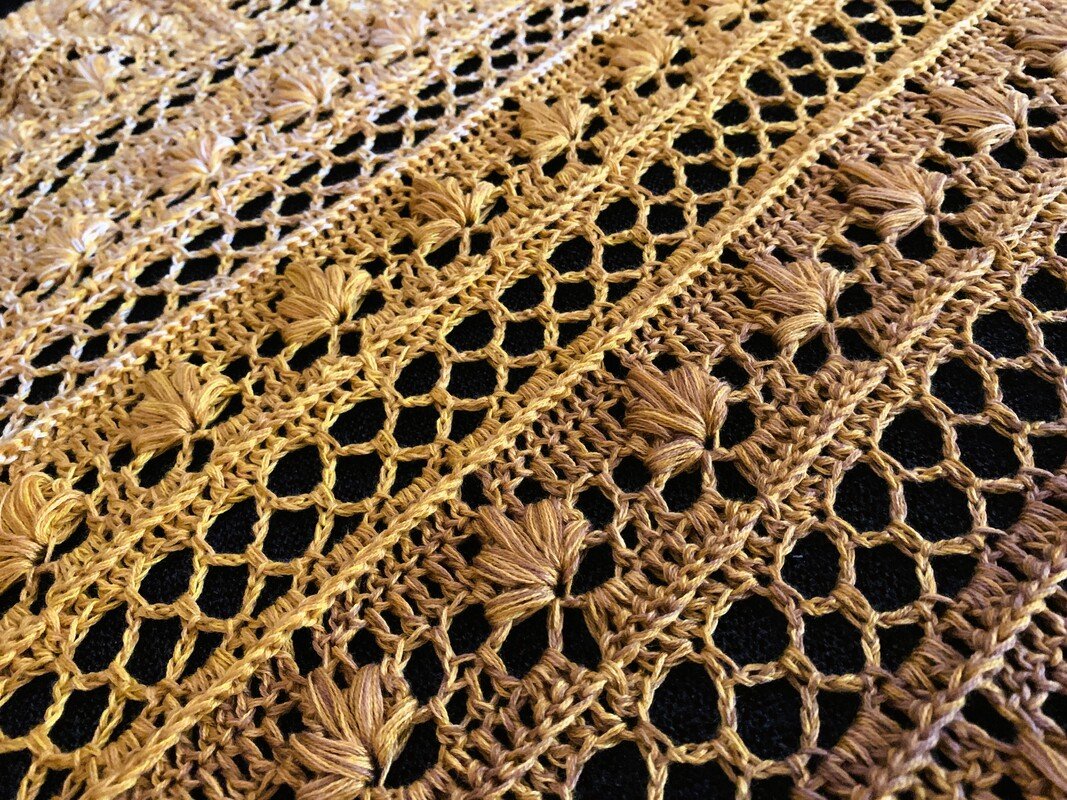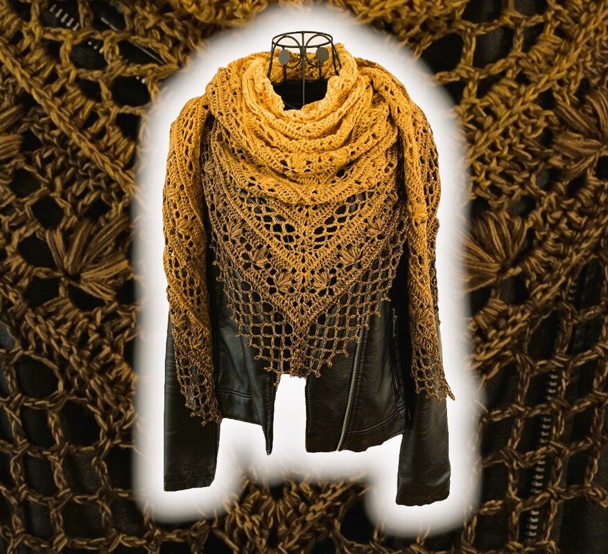Chaldene is a loose/airy, adorable triangular scarf, with an amazing fan-pattern that will for sure be an eye-catcher!