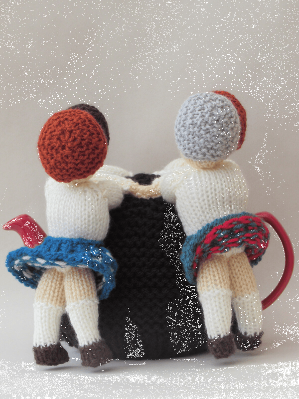 As a nod towards Robert Burns and his Scottish heritage, the tea cosy has four Scotsmen dressed in kilts crossing arms, holding hands singing Auld Lang Syne. I have made the characters all individual with different facial expressions and different coloured tartan kilts. It makes the cosy look colourful and you could just imagine them swaying as they sing.