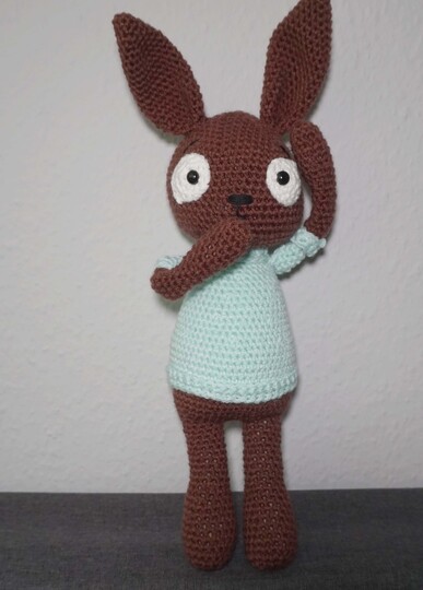 In the crochet instructions, the manufacture of the Bunny Bommel is described in Englisch (US) and with numerous pictures on a total of 9 pages. In our instructions there is always a picture for each step, so that you can easily rework.